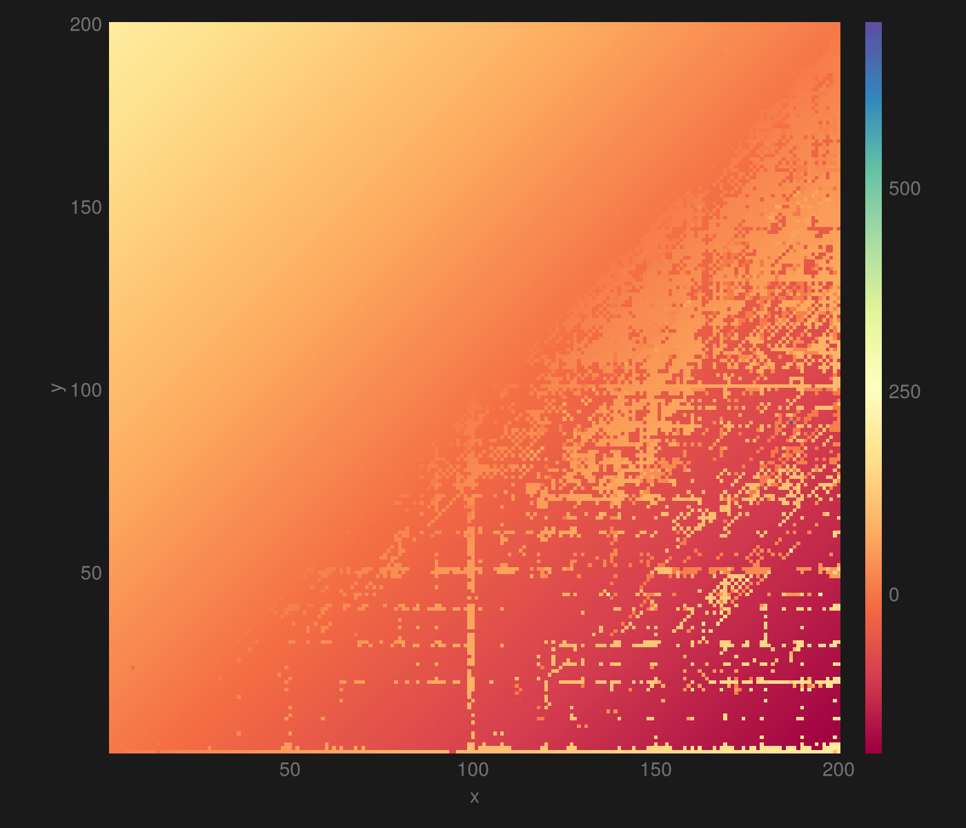 This one looks consistent but of the values are erroneous; with a lot of small mistakes like . 254 are off by 1% or more, while 32 are off by more than 10%. There are a few extreme outliers, like , which is an understandable error to make in the lexical world of LLMs.